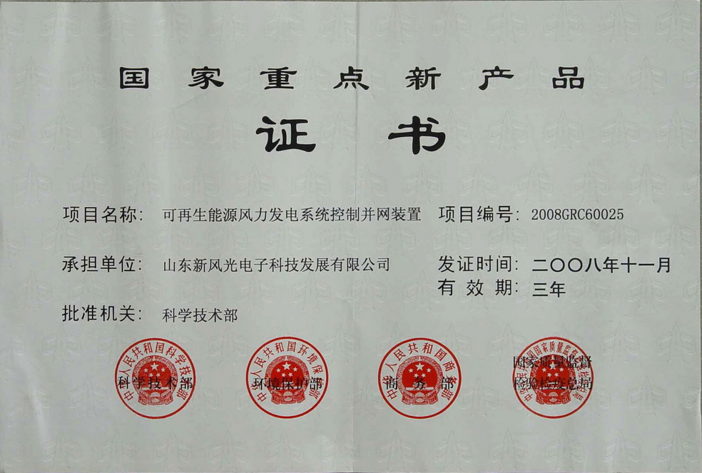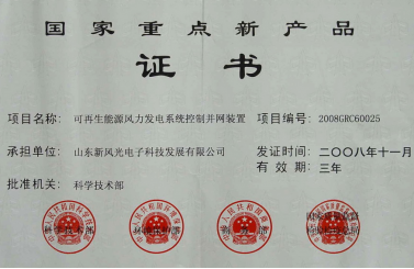 風力發電并網裝置國家重點新產品