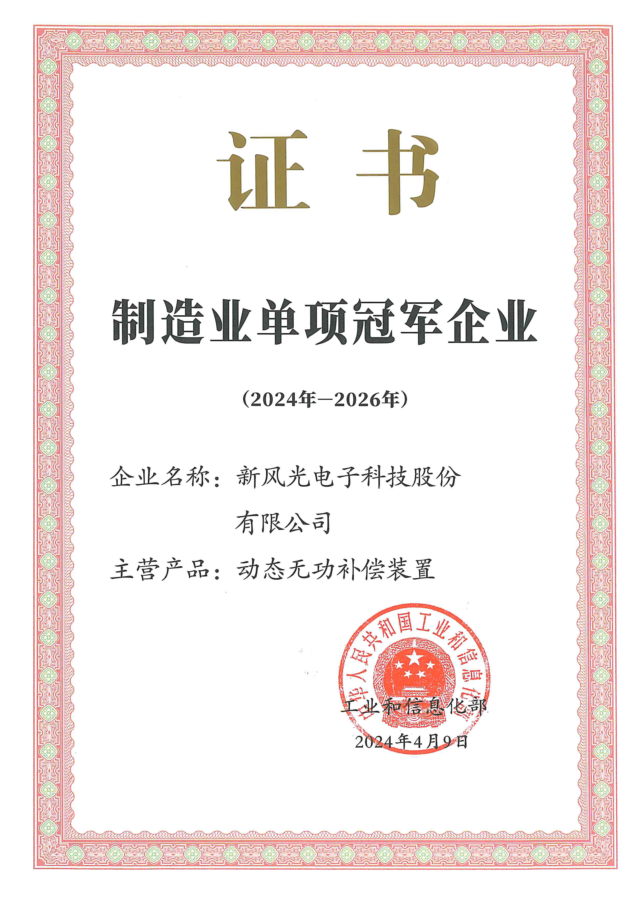 制造業單項冠軍企業證書(2024-2026)