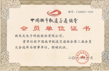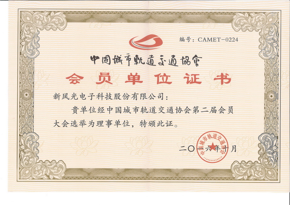 中國城市軌道交通會員單位證書