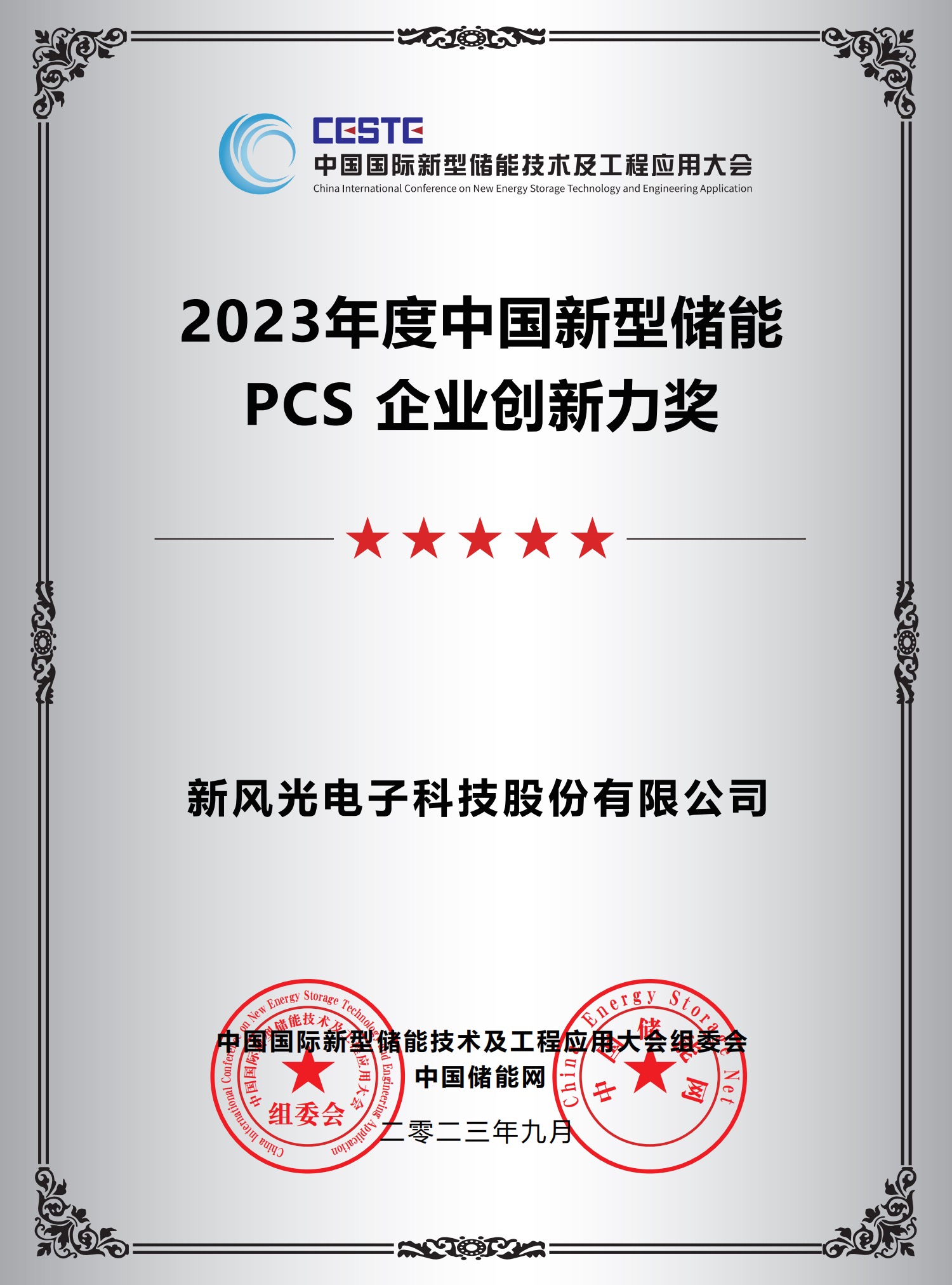 2023年度中國新型儲能PCS企業創新力獎
