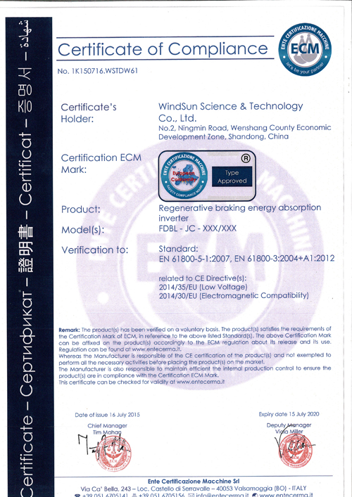 2015年7月產品獲得歐盟安全準入認證(CE )證書。