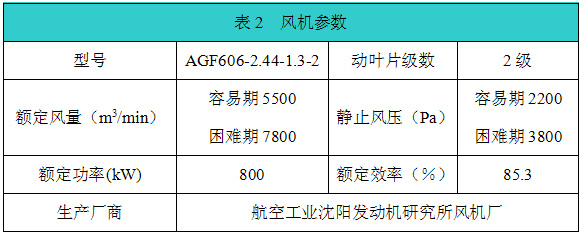 二礦煤礦通風機為兩臺,一用一備,現場2臺通風機設備參數相同,下面表1給出1#通風機基本參數。