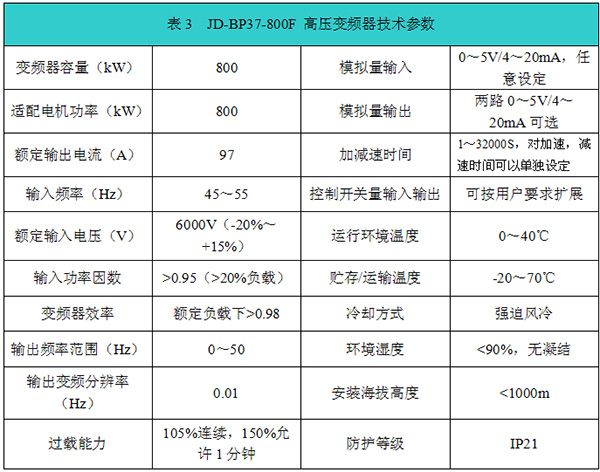 JD-BP37-800F 高壓變頻器技術參數如下表3所示。