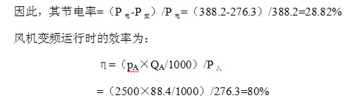 由此可見,變頻運行時,風機效率為80%,其節電率為28.82%,節能效果十分明顯。