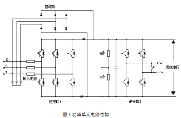 JD-BP37-280T型高壓提升變頻調速器采用進口IGBT為主控器件,采用先進的矢量控制調速技術,以DSP為控制核心,精心巧妙科學的程序邏輯,以彩色液晶觸摸屏為人機對話界面,科學人性化的界面語言,全中文的語言顯示,便于操作及查詢。風光牌高壓提升機變頻器,即可用于鼠籠式電機也可用于繞線式電機,即可用于新礦井配套安裝,也可用于老礦井改造。風光6kV高壓提升變頻器,采用若干個低壓逆變器功率單元串聯的方式實現直接高壓輸出,所用的6kV高壓提升變頻器,變壓器有18組付邊繞組,每相分為6個功率單元,三相共18個單元,采用36脈沖整流,輸入端的諧波成分低于國標規定。高壓提升變頻器系統結構如圖2所示。功率單元電路如圖3所示。