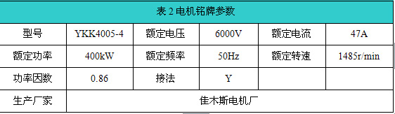 井口兩臺電機銘牌中主要參數(shù)如表2所示。