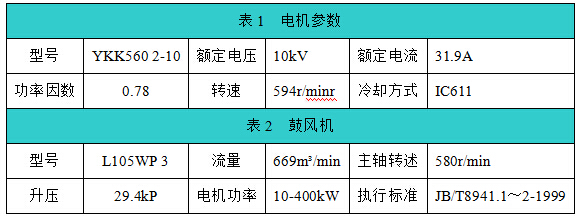 現(xiàn)場羅茨鼓風(fēng)機(jī)參數(shù)如表1、表2所示。