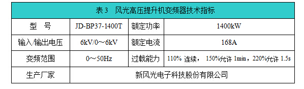 風(fēng)光高壓提升機(jī)變頻器具體參數(shù)如表3所示。