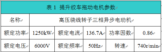 該煤礦礦井提升機兩臺拖動電機參數(shù)表1。風光高壓提升機變頻器具體參數(shù)如表2所示。設(shè)備現(xiàn)場如圖1所示。