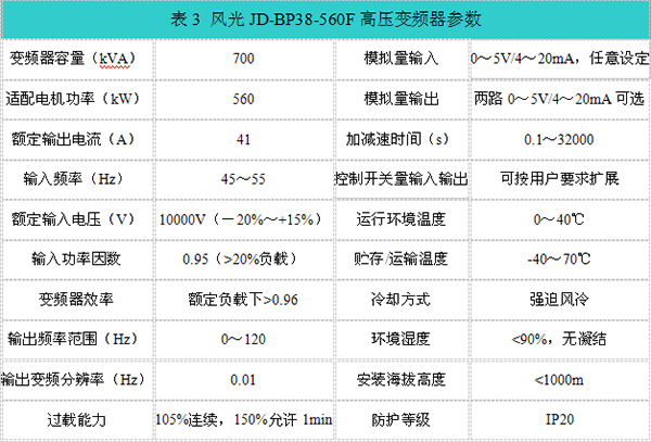 風光JD-BP38-560F變頻器參數(shù)如表3所示。