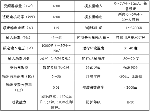 表2 山東新風光JD-BP38-1600F高壓變頻器技術參數: