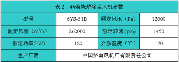 現場2#、4#焙燒爐除塵ID風機型號相同,以4#焙燒爐除塵ID風機為例介紹其參數。