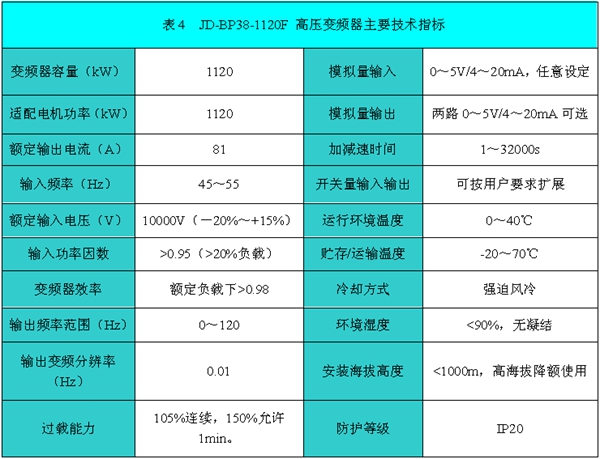 JD-BP38-1120F高壓變頻器技術指標如表4所示。