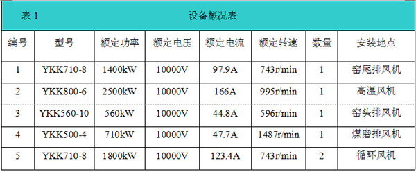 在風機改造過程中,高溫風機(2500kW/10kV、1套)采用“一拖一”控制加自動旁路柜,窯頭排風機(560kW/10kV、1套)、窯尾排風機(1400kW/10kV、1套)、煤磨排風機(710kW/10kV、1套和循環風機(1800kW/10kV、2套)采用“一拖一”控制加手動旁路柜。