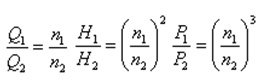 對離心式風機而言,流體力學有以下原理:輸出風量Q與轉速n成正比;輸出壓力H與轉速n的平方成正比;輸出軸功率P與轉速n的立方成正比;即: