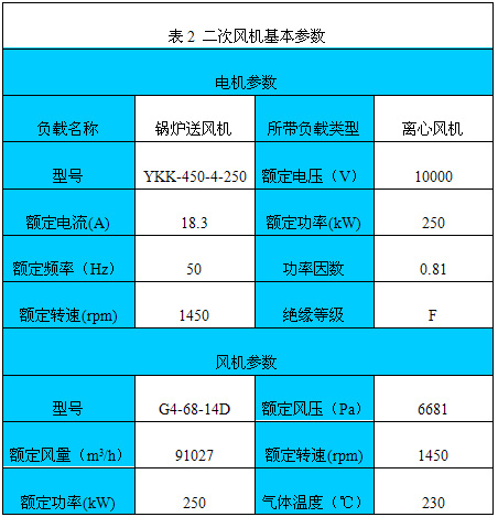 表1為現(xiàn)場一次風(fēng)機(jī)基本參數(shù),表2為現(xiàn)場二次風(fēng)機(jī)基本參數(shù)。