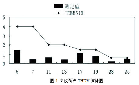 變頻器采用移相多脈沖整流變壓器,二次側(cè)所接各個(gè)單元產(chǎn)生的高次諧波電流在相位上產(chǎn)生偏移,因此在變壓器一次側(cè)互相抵消,將一次側(cè)到電網(wǎng)的電流諧波控制到最小。變頻器輸入電流諧波在不加任何濾波器的情況下也能滿足IEEE519國際標(biāo)準(zhǔn),實(shí)際檢測值如圖4所示。