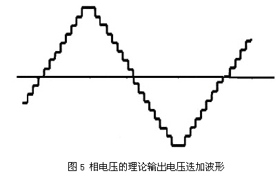 變頻器的相電壓輸出為8個(gè)單元串聯(lián)輸出,相電壓輸出17電平。每個(gè)單元的輸出都采用正弦波PWM波形調(diào)制,載波頻率為3kHz,輸出電流為正弦波,輸出電壓非常近似正弦波。相電壓的理論輸出電壓迭加波形如圖5所示。