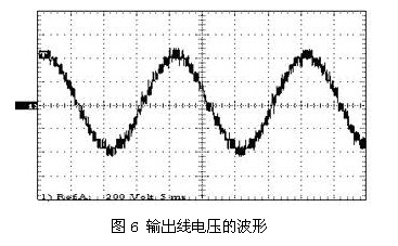 另外,控制器與功率單元之間采用多通道光纖通訊技術(shù),低壓部分和高壓部分完全可靠隔離,系統(tǒng)具有極高的安全性,同時(shí)具有很好的抗電磁干擾性能,并且各個(gè)功率單元的控制電源采用一個(gè)獨(dú)立于高壓系統(tǒng)的統(tǒng)一控制器,方便調(diào)試、維修、現(xiàn)場培訓(xùn),增強(qiáng)了系統(tǒng)的可靠性。控制器有一套獨(dú)立于高壓電源的供電體系,在不加高壓的情況下,設(shè)備各點(diǎn)的波形與加高壓情況基本相似,在模擬調(diào)試情況下八單元串聯(lián)后輸出的線電壓如圖6所示。給整機(jī)可靠性、調(diào)試、培訓(xùn)帶來了很大方便。