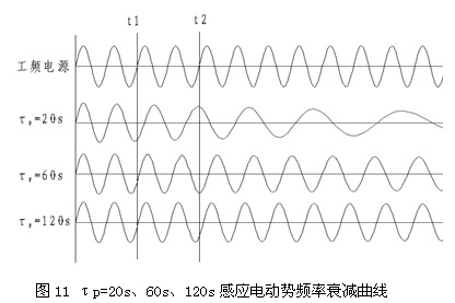 由公式曲線分別作出τp=20s、60s、120s的電動機感應電動勢頻率衰減曲線,如圖11所示。