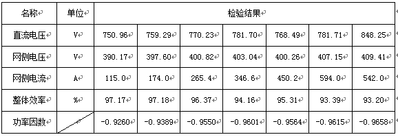 我公司做的大功率可再生能源回饋并網裝置經鐵道部產品質量監督檢驗中心檢驗證明:具有輸出功率大、網側電流波形好、整體效率高等特點。表2是功率因數、直流側輸入電壓、網側交流電流及整體效率的簡表。