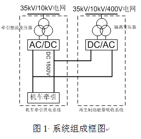 再生制動能量吸收裝置是并聯在1500V/750V直流系統中,經過逆變裝置變成交流,經隔離變壓器輸入到電網(35kV/10kV/400V)。